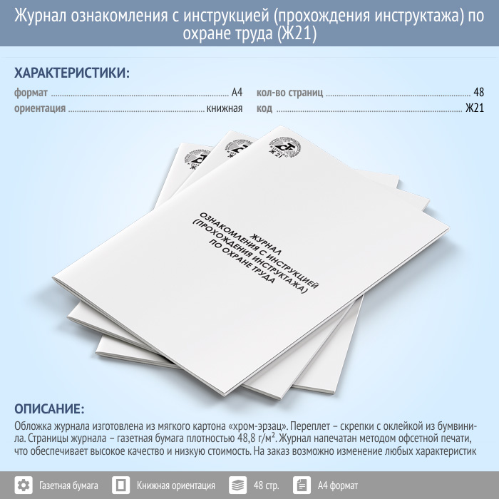 Главная Печатная продукция по охране труда Журналы по ОТ и ТБ и другие Журнал ознакомления с инструкцией (прохождения инструктажа) по охране труда