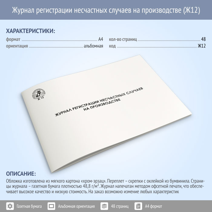 Главная Печатная продукция по охране труда Журналы по ОТ и ТБ и другие Журнал регистрации несчастных случаев на производстве