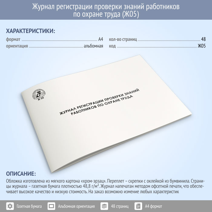 В журнал вносятся: номер записи, дата проверки знаний, фамилия, имя, отчество проверяемого лица, название правил, стандартов, инструкций, по которым проводилась проверка, фамилии членов комиссии или проверяющих лиц, их подписи, а также подпись проверяемого лица. Контроль знаний работников по охране труда осуществляется специалистом по охране труда или работником, на которого приказом работодателя возложены эти обязанности. Документ оформляется по установленным правилам: страницы прошнуровываются, нумеруются, заверяются печатью организации и подписью ответственного лица.