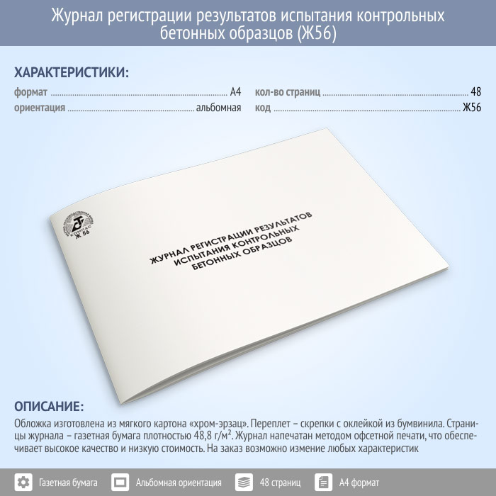Журнал регистрации результатов испытания контрольных бетонных образцов