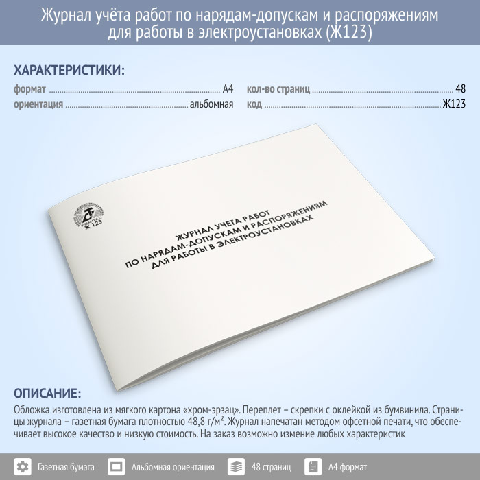 Журнал учета работ по нарядам-допускам и распоряжениям для работы в электроустановках является обязательным учетным документом, используемым на предприятиях всех видов деятельности для фиксации мероприятий по электробезопасности при проведении работ в действующих электроустановках. Журнал предназначен для регистрации работ, выполняемых по нарядам-допускам и распоряжениям, что обеспечивает контроль за соблюдением требований безопасности и организацию допуска персонала к работе.