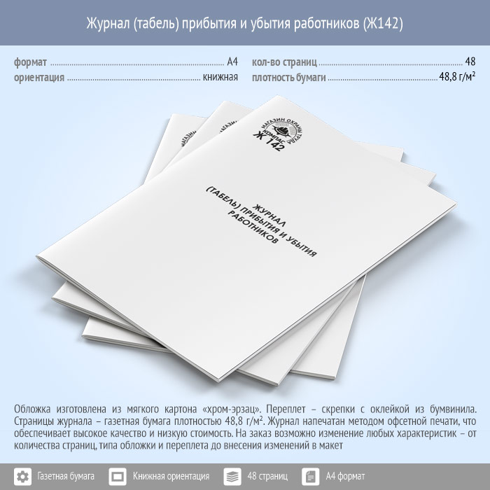 Журнал (табель) прибытия и убытия работников (48 стр., Ж142)