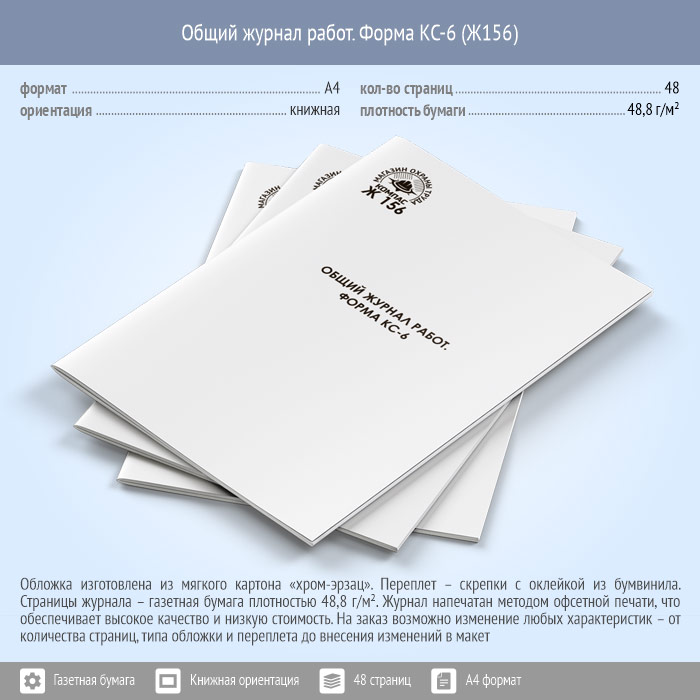 Заказывая Общий журнал работ. Форма КС-6 у нас, Вы можете выбрать любое исполнение обложки и количество страниц в нем