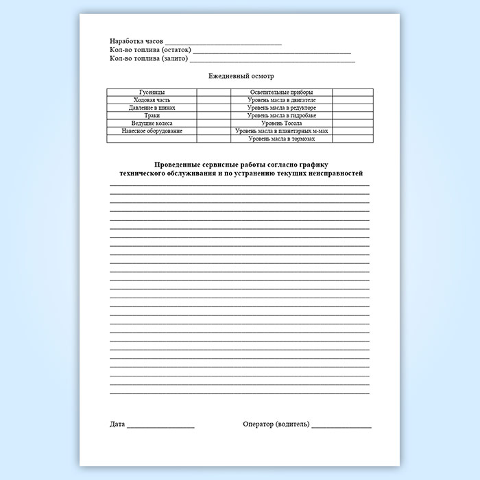 Журнал ежедневного технического обслуживания гусеничного транспорта