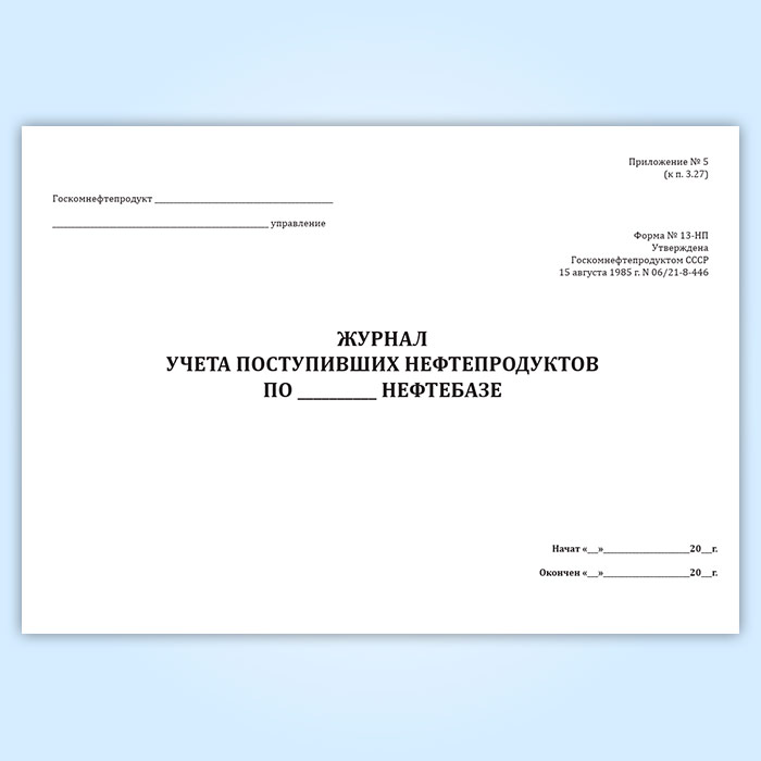 Журнал учета поступивших нефтепродуктов по нефтебазе (форма № 13-НП)