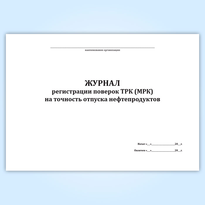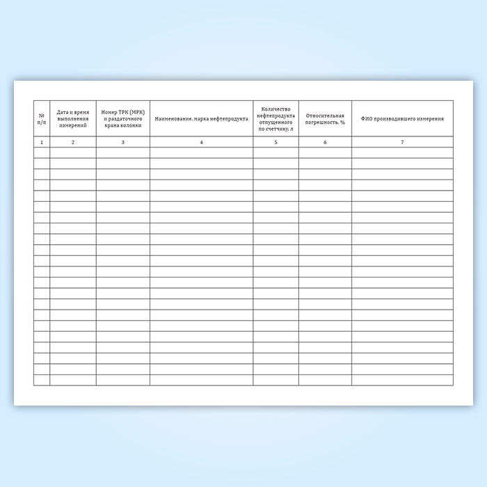 Журнал регистрации поверок ТРК (МРК) на точность отпуска нефтепродуктов