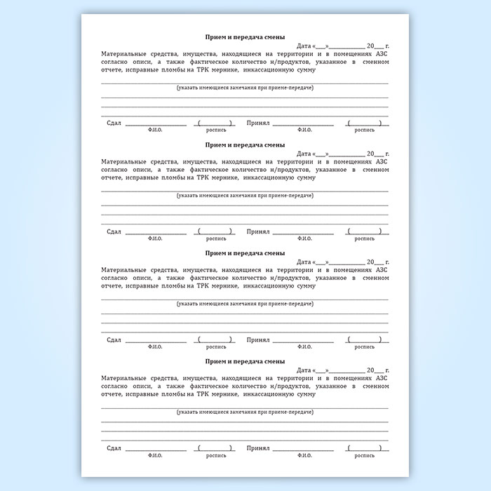 Журнал приема и передачи смен на АЗС