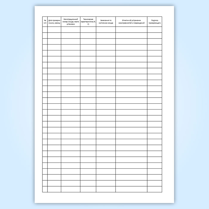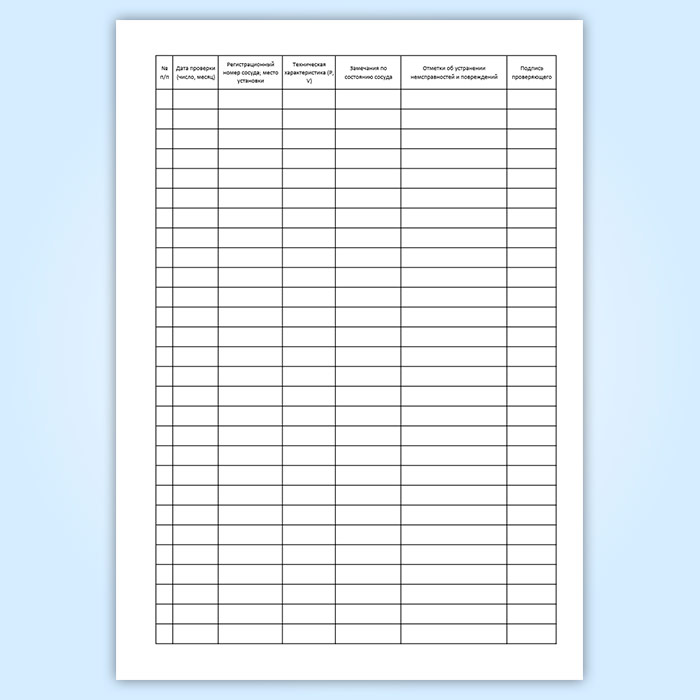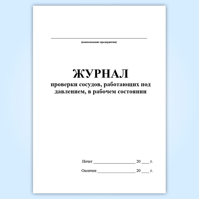 Журнал проверки сосудов, работающих под давлением в рабочем состоянии