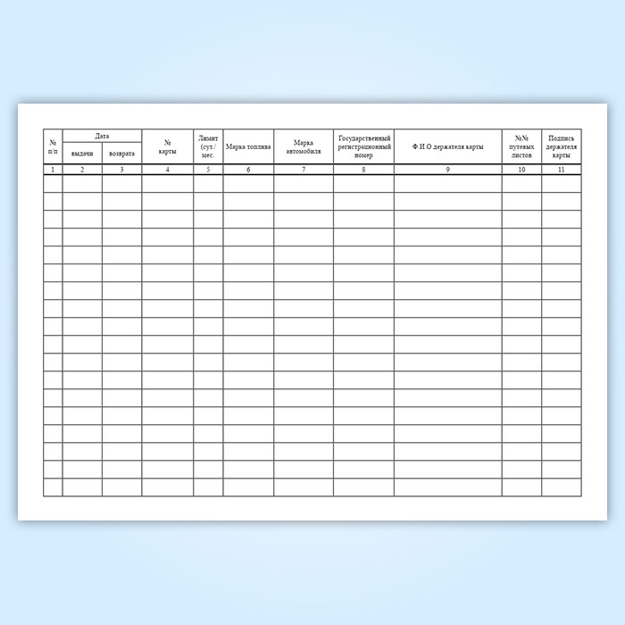 См. также Журнал учета движения топливных карт, графы которого отличаются.