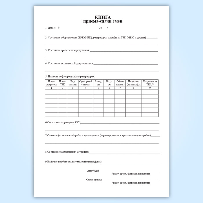 См. также: Сменный журнал операторов АЗС, Журнал приема и передачи смен на АЗС, Журнал приема и передачи смен на АЗС (другой вариант)
