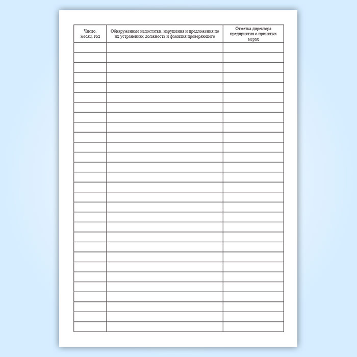 Обнаруженные недостатки, нарушения и предложения по их устранению; должность и фамилия проверяющего