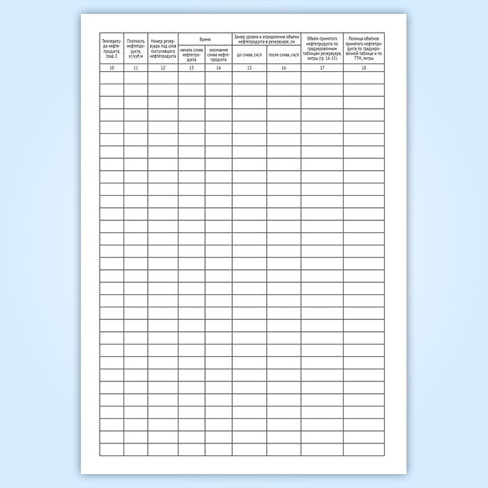 17. Объём принятого нефтепродукта по градуировочным таблицам резервуара, литры (гр. 16-15)