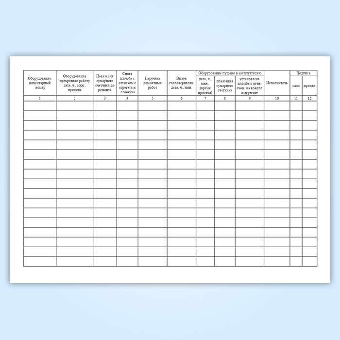 Учет обслуживания и ремонта оборудования АЗС ведется в журнале, в котором указывается инвентарный номер оборудования и перечень произведенных ремонтных работ.