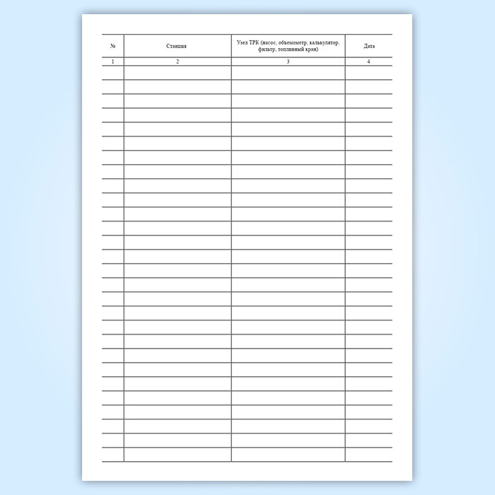 Журнал учета основных узлов ТРК (ремонт и визуальный осмотр) АЗС