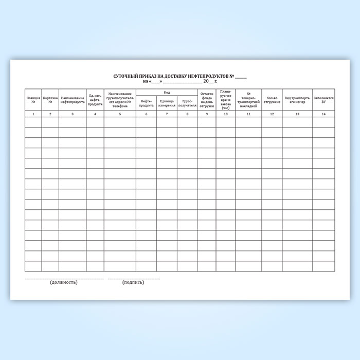 Журнал суточных приказов на доставку нефтепродуктов имеет графы: