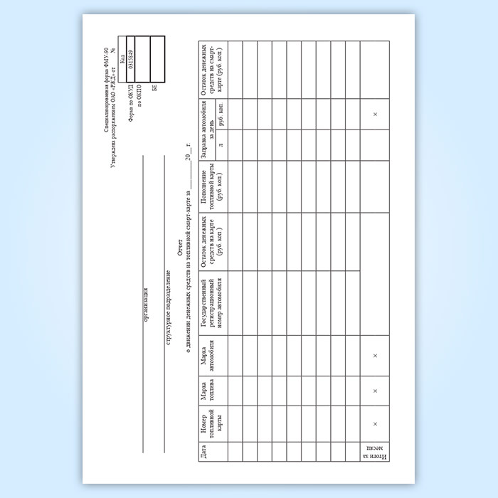 Журнал учета движения денежных средств на топливной смарт-карте