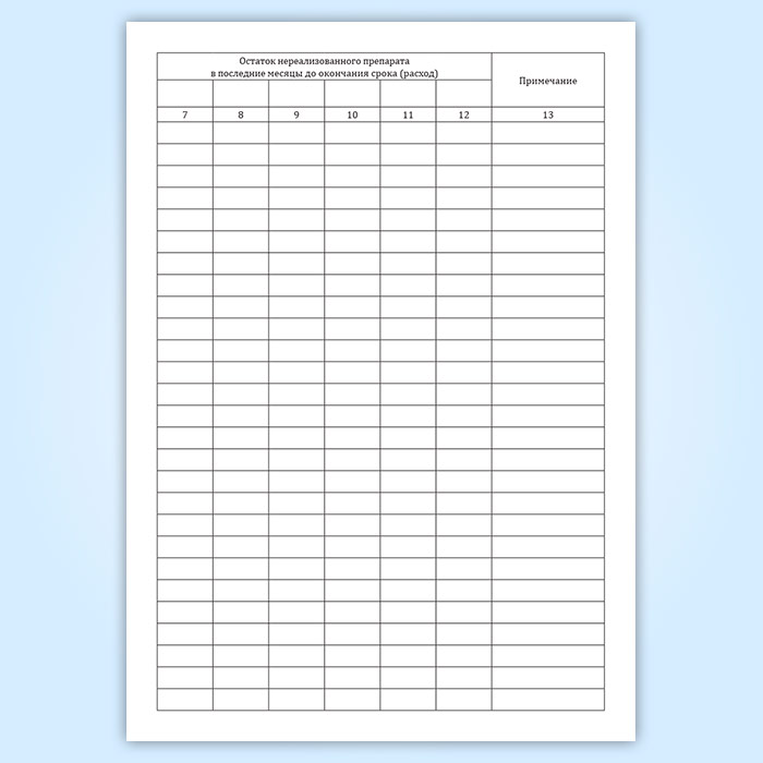 7-12. Остаток нереализованного препарата в последние месяцы до окончания срока (расход)