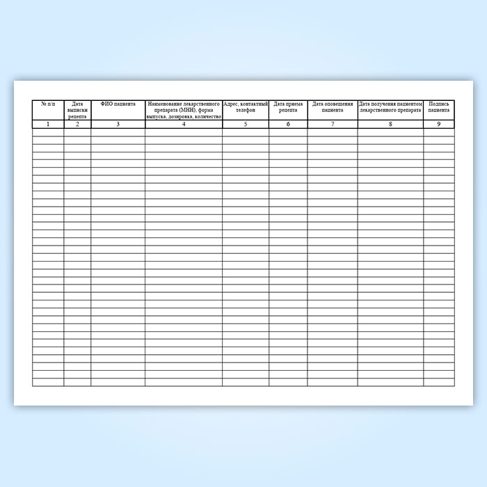 Журнал по обеспечению лекарственными препаратами, входящими в минимальный ассортимент лекарственных препаратов, необходимых для оказания медицинской помощи