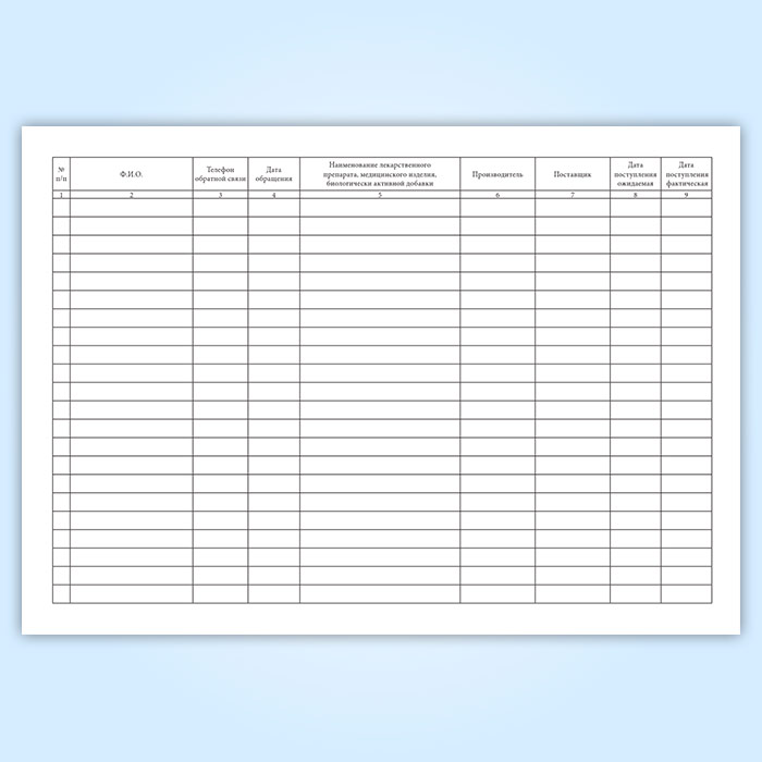 В настоящее время журнал учета обращений и спецзаказов не регламентирован действующим законодательством, аптечные организации и индивидуальные предприниматели самостоятельно выбирают удобную для них форму данного журнала.
