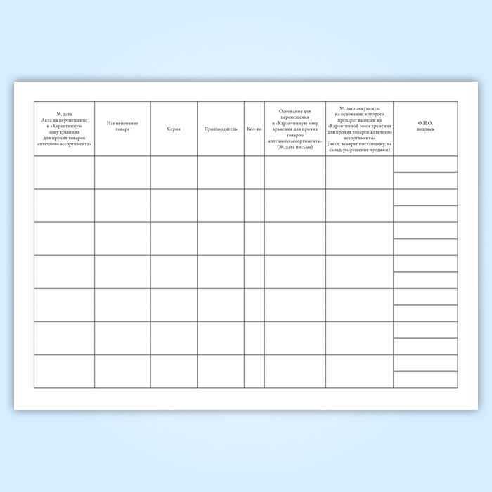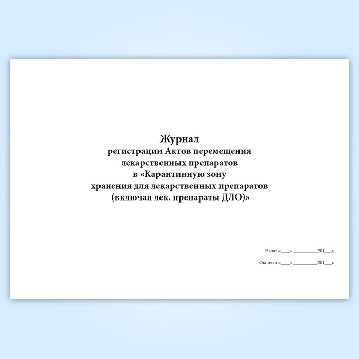 Журнал регистрации Актов перемещения лекарственных препаратов в «Карантинную зону хранения для лекарственных препаратов (включая лек. препараты ДЛО)»