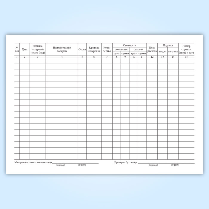 Журнал учета расхода медицинских товаров на хозяйственные нужды (Форма № А-2.13) имеет графы: