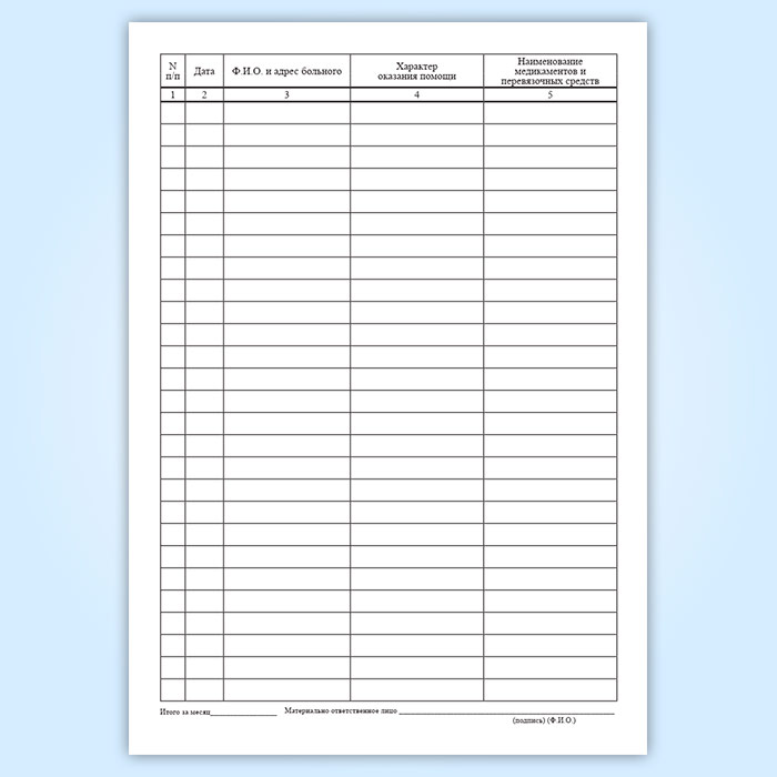 Журнал учета медицинских товаров, израсходованных для оказания первой медицинской помощи (форма А-2.15)