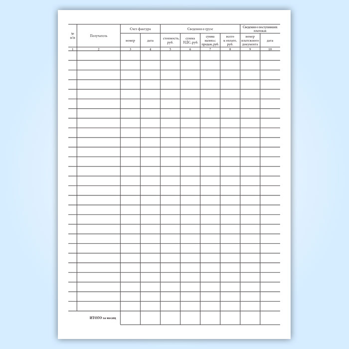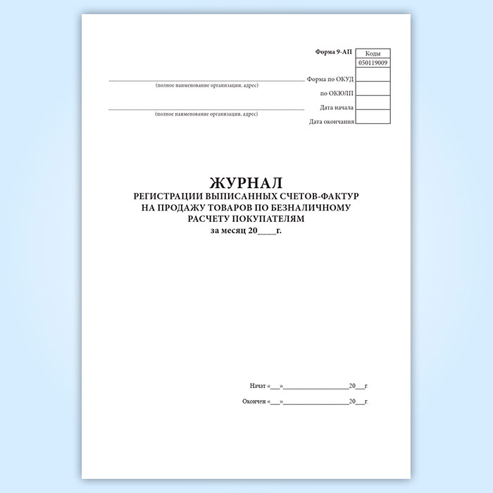 Журнал регистрации выписанных счетов-фактур на продажу товаров по безналичному расчету покупателям (форма 9-АП)