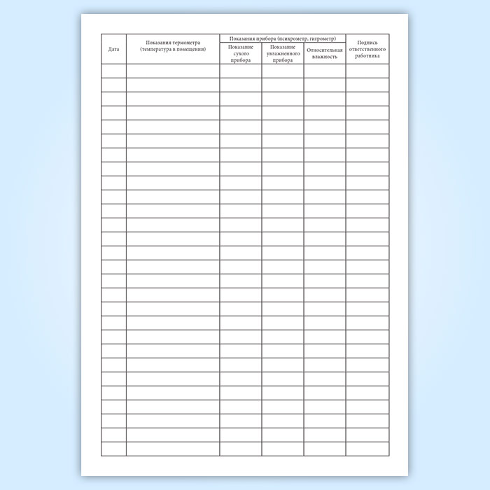 Если помещение не оборудовано приборами для контроля отностительной влажности воздуха то ведут журнал регистрации температурного режима холодильного оборудования.