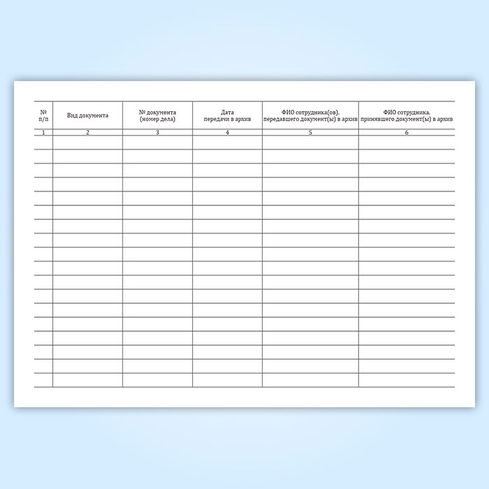 Для учета документов, сданных в архив, используют журнал, в котором указывают № документа и ФИО сотрудника, принявшего документ(ы) в архив.