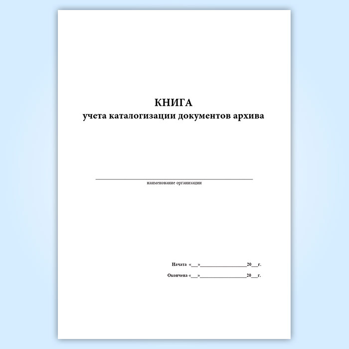 Книга учета каталогизации документов архива ведется на основании Федерального закона N 125-ФЗ от 22.10.2004 "Об архивном деле в Российской Федерации" и ГОСТ Р 7.0.8-2013. Делопроизводство и архивное дело. Термины и определения.