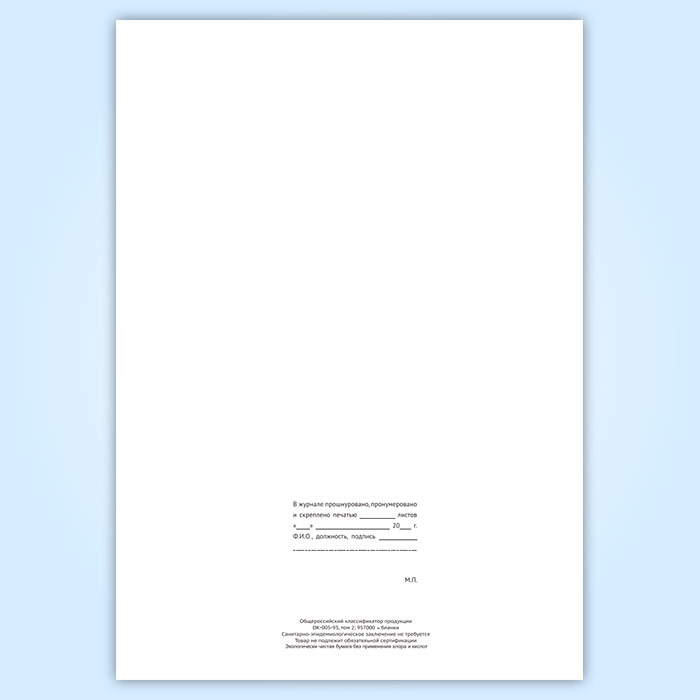 Вы получаете печатную продукцию прошнурованной и c местом для вашей печати в соответствии с действующими нормативными документами: