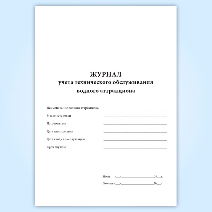 Форма журнала учета технического обслуживания водного аттракциона соответствует приложению Г к ГОСТ Р 52604-2012 Аттракционы водные. Безопасность при эксплуатации. Общие требования