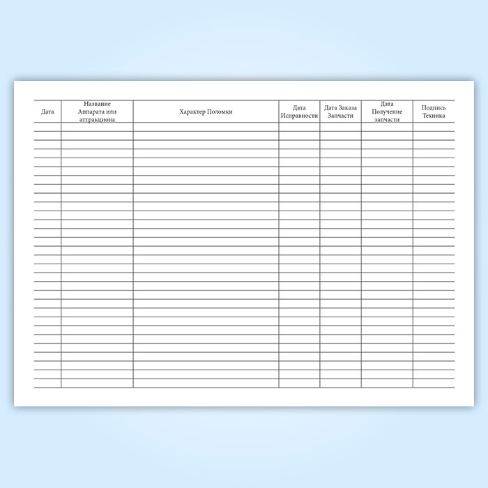 Журнал учета поломки аттракционов и игровых автоматов