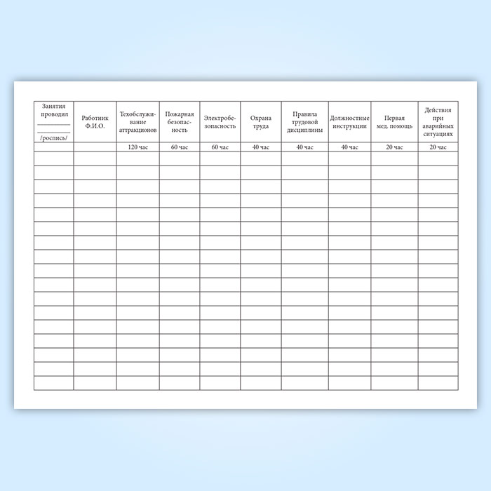 Журнал по обучению персонала передвижного городка аттракционов