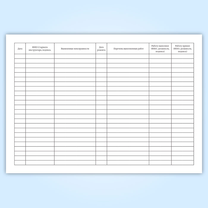 Журнал технического обслуживания и ремонта (аттракционы) содержит графы: