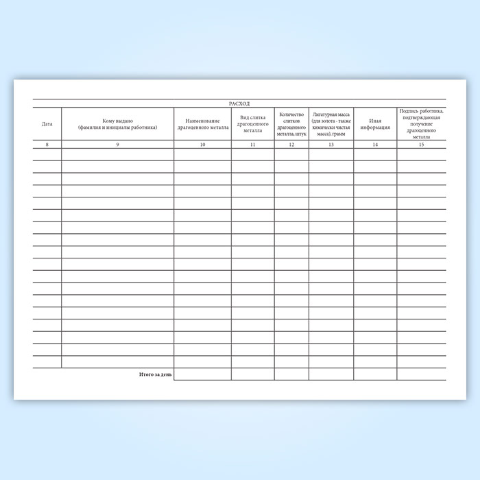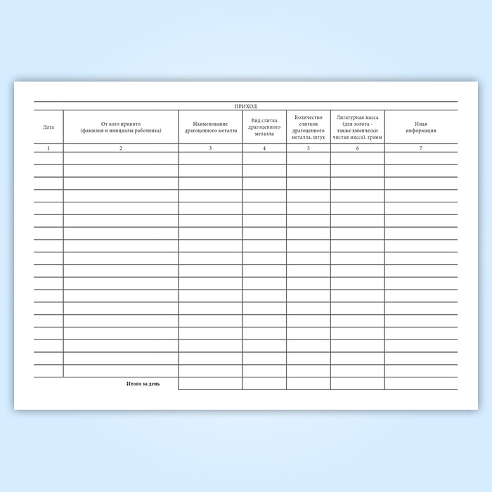 Книга учета принятых и выданных драгоценных металлов