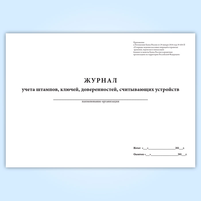 Журнал учета штампов, ключей, доверенностей, считывающих устройств