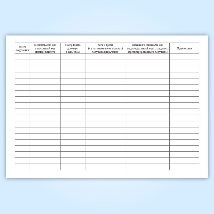 Журнал регистрации поручений клиентов имеет графы (столбцы):