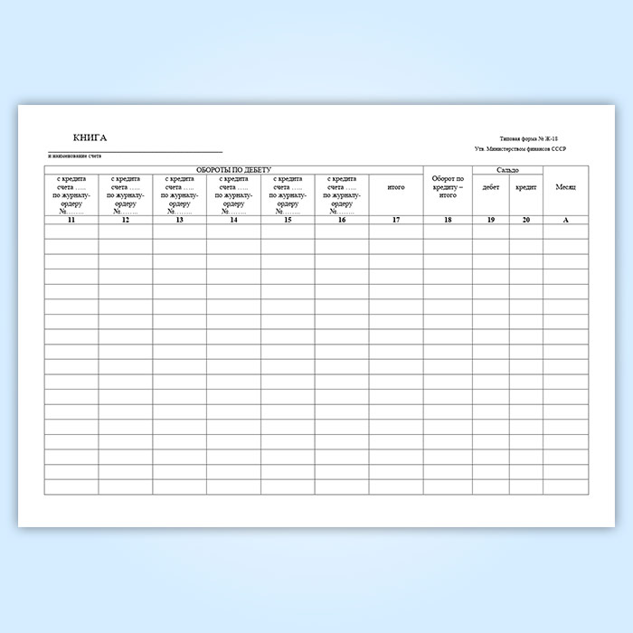 Главная книга, горизонтальная (Форма Ж-18) имеет графы: