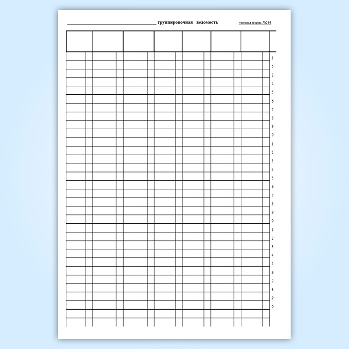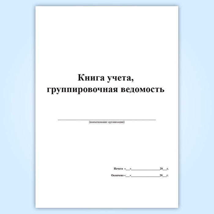 Книга учета состоит из чистых бланков группировочной ведомости, которые служат для единовременной систематизации данных из документов по установленным признакам.