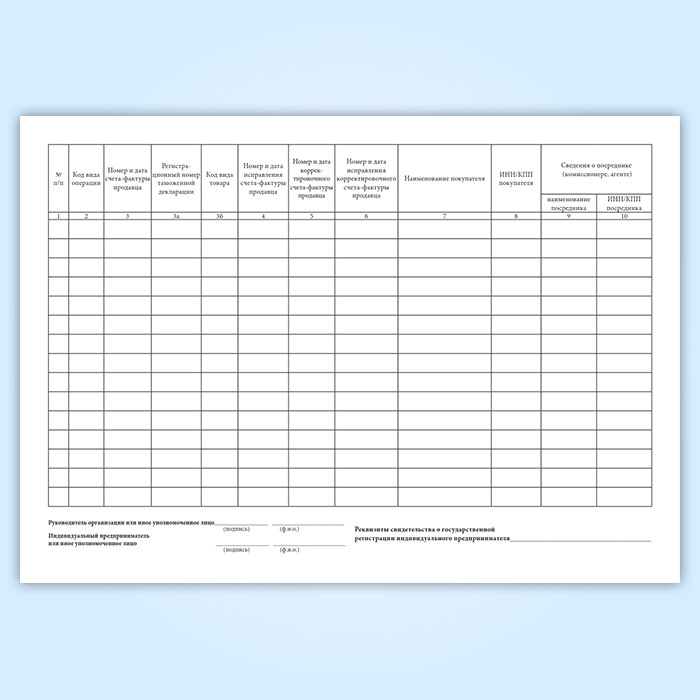 1. Продавцы ведут книгу продаж, применяемую при расчетах по налогу на добавленную стоимость, на бумажном носителе либо в электронном виде, предназначенную для регистрации счетов-фактур (контрольных лент контрольно-кассовой техники, бланков строгой отчетности при реализации товаров, выполнении работ, оказании услуг населению), документов (чеков) для компенсации суммы налога на добавленную стоимость при реализации товаров физическому лицу - гражданину иностранного государства, указанному в пункте 1 статьи 169.1 Налогового кодекса Российской Федерации, а также корректировочных счетов-фактур, составленных продавцом при увеличении стоимости отгруженных (выполненных, оказанных, переданных) товаров (работ, услуг, имущественных прав). В случае невыставления счетов-фактур на основании подпункта 1 пункта 3 статьи 169 Налогового кодекса Российской Федерации в книге продаж регистрируются первичные учетные документы, документы, содержащие суммарные (сводные) данные по операциям, совершенным в течение календарного месяца (квартала).