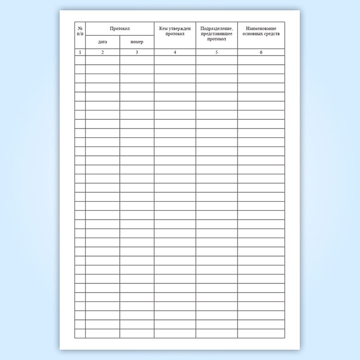Журнал регистрации протоколов на списание основных средств содержит графы: