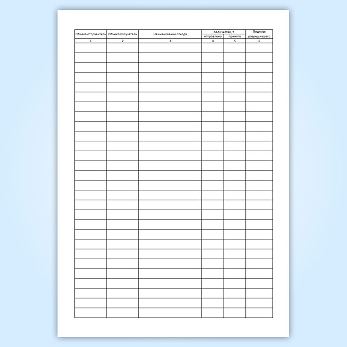 Для учета и контроля накладных ведут специальный журнал регистрации, в котором указывают объект-отправителя, получателя и наименование отхода.