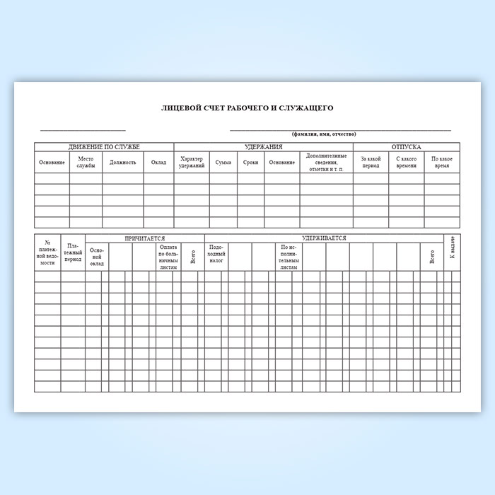 Лицевой счет рабочего и служащего применяется для отражения сведений о заработной плате за прошлые периоды и пенсии.