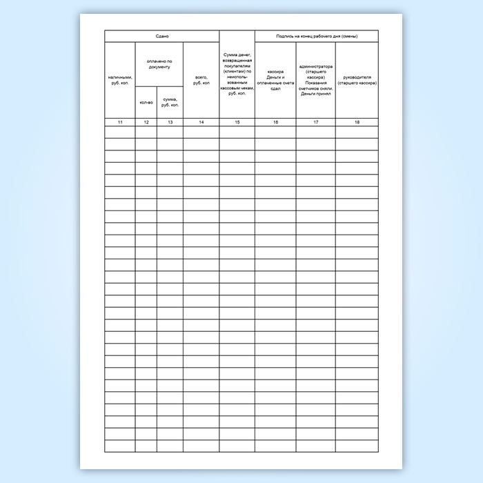 Журнал кассира-операциониста, вертикальный (форма № КМ-4)