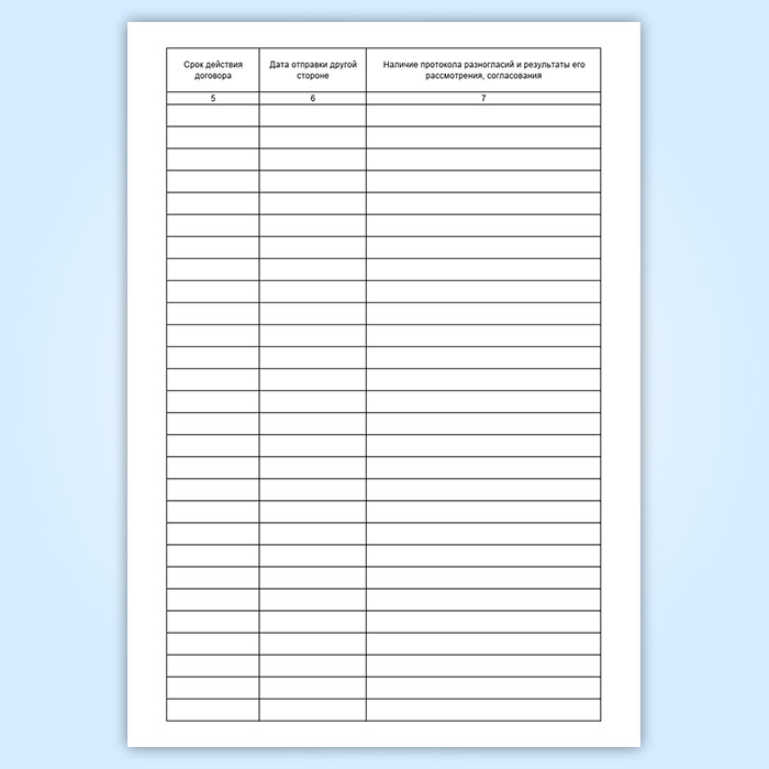7. Наличие протокола разногласий и результаты его рассмотрения, согласования