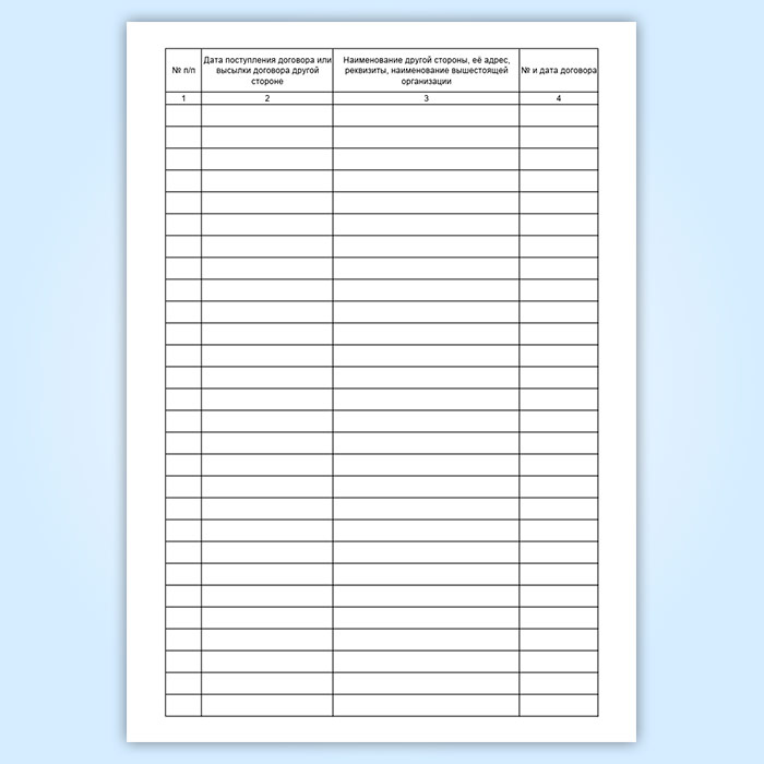 Журнал применяется для регистрации и учета на предприятии заключенных договоров с контрагентами.