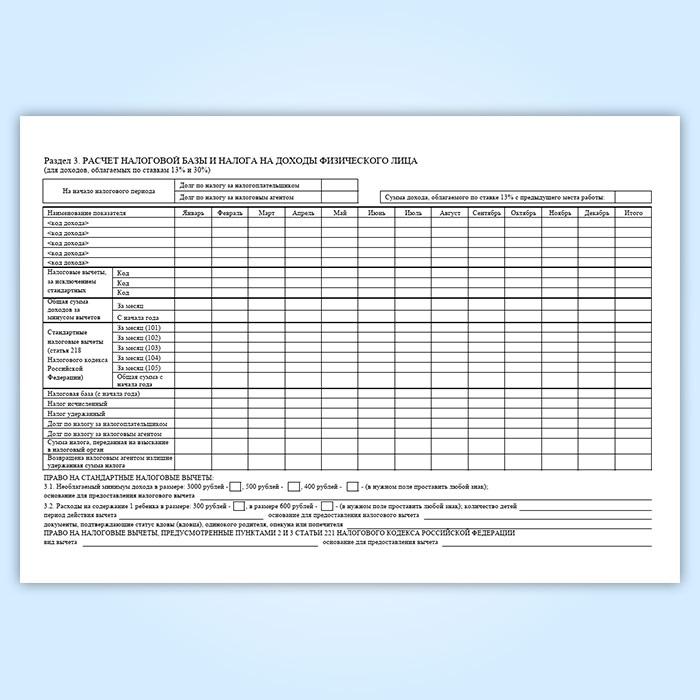 Раздел 3. Расчет налоговой базы и налога на доходы физического лица (для доходов, облагаемых по ставкам 13% и 30%)