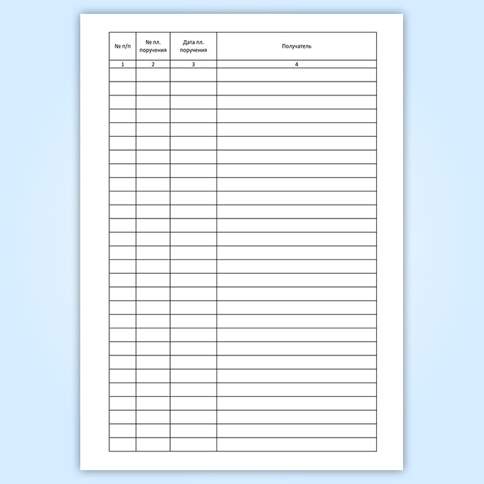 Учет платежных поручений ведется в электронном виде или в настоящей книге или журнале регистрации платежных поручений.