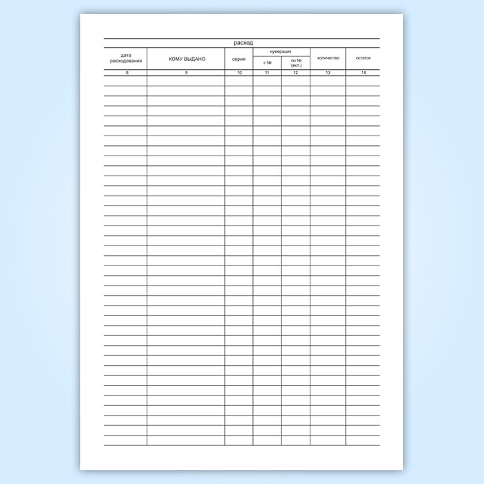 Книга учета прихода и расхода бланков строгой отчетности имеет графы: